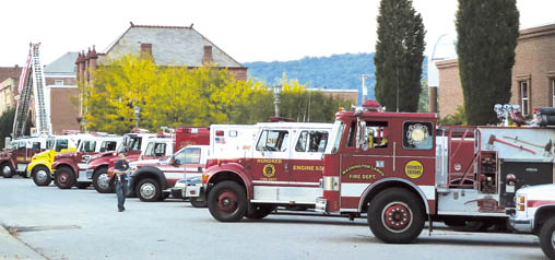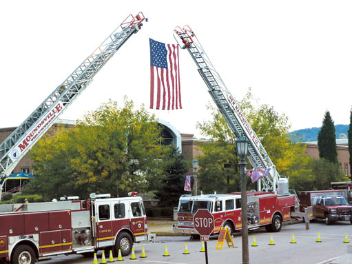 Many emergency service organizations attended the 9/11 ceremony, as evident from the long line of service vehicles aligned along south Main Street.