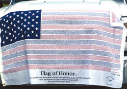 - A “Flag of Honor” created from the names of those who perished in the terrorist attacks of 9/11 adorns a fire truck.