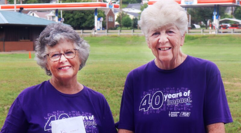Judy Pastilong and Penny Morris are smiling because they are survivors of cancer. Each year they help with organizing the Relay for Life walking event. This year 300 survivors and caregivers took part in the event to raise money to fight this disease.