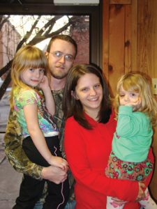 Abriana “Abbie” Stevens, right, had her right eye removed because it had retinoblastoma, the most common type of eye cancer in children. Now her family, five-year-old sister Allison Stevens, father Daniel Wade, and mother Janie Price, are thankful for those who have helped in her recovery and in covering some of her medical costs. (Photo by Amy Witschey)
