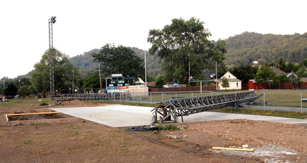 - The storm damage at Paden City High School’s football field included five light poles were compromised, including three that had cracks at the bottom of the poles, as well as two that collapsed completely.