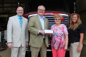 Christopher Turak, of GKT, visited the Town of Hundred on Thursday, Aug. 24 and presented fire department personnel with a donation in the amount of $500. Hundred VFD President Johanna Lemasters was on hand to graciously accept the donation, along with Wetzel County Assessor Scott Lemley, who is also a Hundred resident.