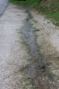 Sewage flows down a street in Pine Grove, which has been plagued with sewage issues for the past couple of years.