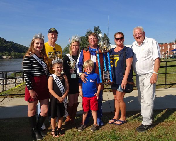 Photos by Chuck Clegg Lee Daniel was the top Formula Two winner, receiving the Wetzel County Cup. He is pictured with his son Lake, the Wetzel County Commission, and some members of the RegattaFest royalty.
