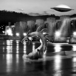 You now realize that the fire breathing creature was just a figment of my imagination. But, there are reports that a street vendor is selling t-shirts that say, “I Survived the Dragon on Main Street.” I just wish I could figure out why a flying saucer was hovering over the dam at the moment I looked Thru the Lens.