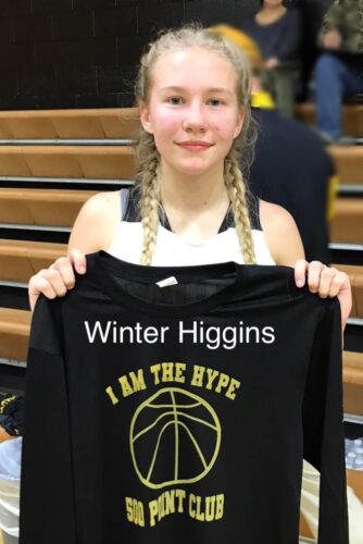 Following the Lumberjills Higgins hitting her 500th point of her career she was awarded the game ball and a shirt designating her as a member of the 500 hundred club. Congratulations to Winter.