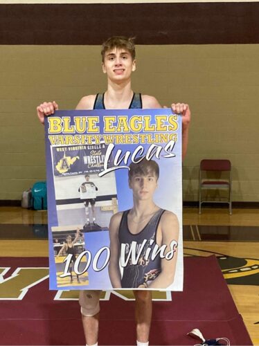 Lucas Zombotti, 132 pound senior wrestler from Magnolia High School, won his 100th win Wednesday, January 11th at Williamstown High School.