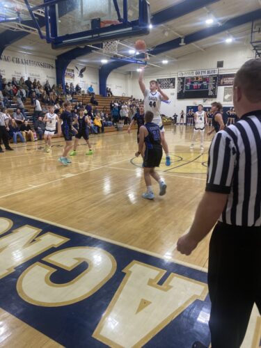 In the first quarter Magnolia got 3-pointers from Brayden Vargo and Kingston Christen, while Haden Pyles and Dubale Greathouse added four points each to jump in front14-11. However the Blue Eagle defense held the Knights in check in the second frame allowing only nine points while scoring 21 to boost their advantage. Brady Kocher had five in the second frame, while Greathouse and Christen each had five in the quarter. Hayden Brown had 10 first half points for the Silver Knights