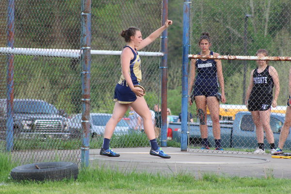 - Magnolia’s Kyndra Pilant readies to toss the discus during a regional track meet. Pilant finished first, as did teammate Mady Winters (not pictured) in the discus.