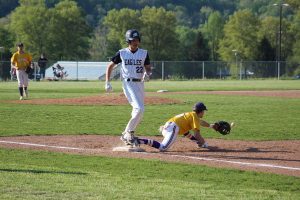 The Eagles’ Silas McKeever singled twice and doubled, while Patrick Mirandy shut down the top seeded bats of St. Marys with two-hit in four and two-thirds innings pitched, striking out six and walking three, en route to a 13-2 Blue Eagle victory May 8 at St. Marys High School in the Region I, Section II second game.